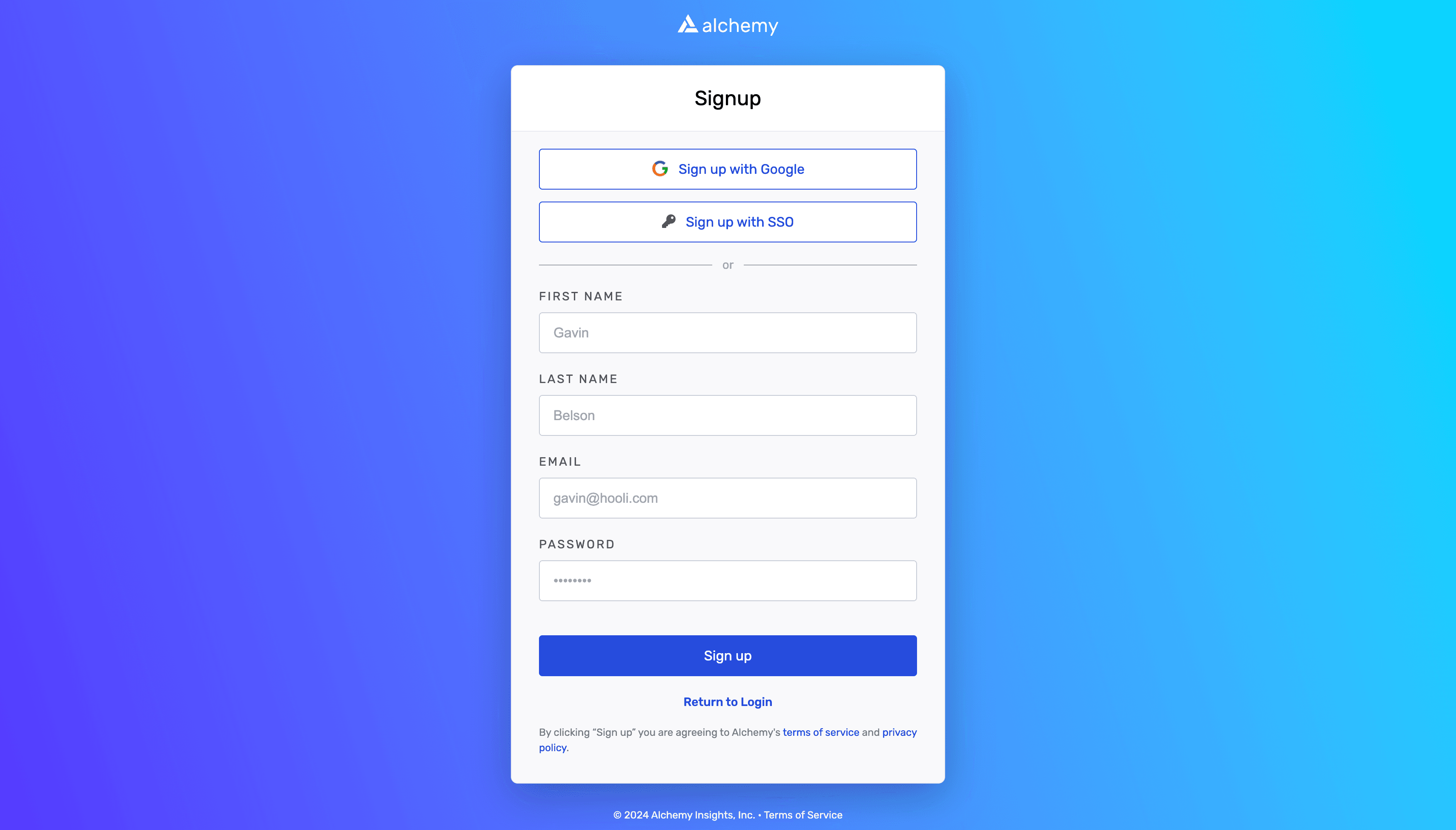 Go to https://auth.alchemy.com/signup (opens in a new tab) and sign up for an Alchemy or sign in with your existing account.