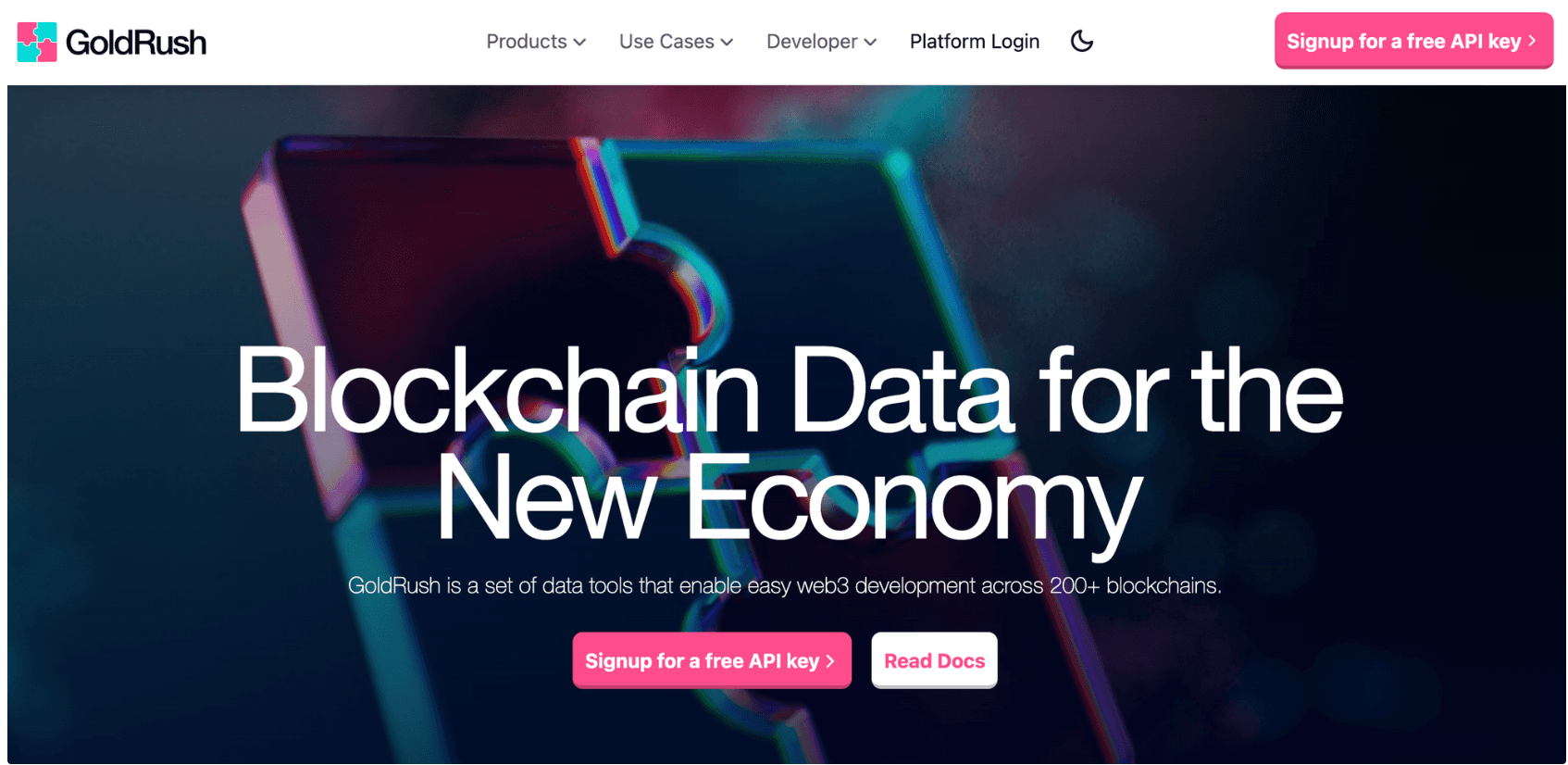 Before using the GoldRush API, you need to register for an account and obtain an API key. Visit the GoldRush website (opens in a new tab) and click the "Signup for free API Key" button. Follow the prompts to fill in the necessary information and submit your application.