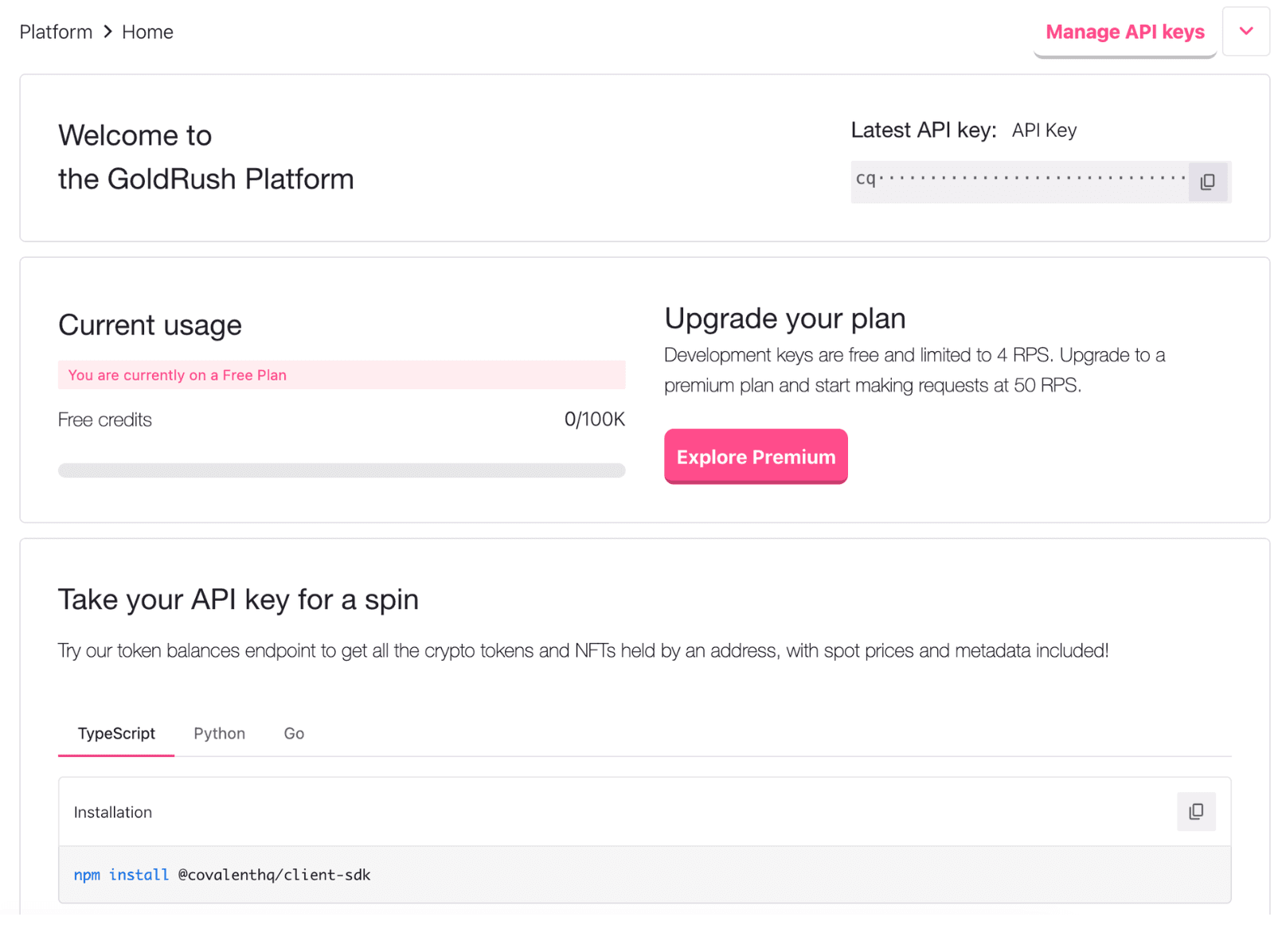 Registering for a GoldRush API Key